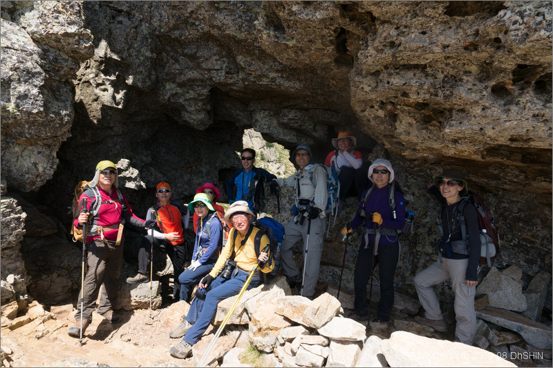 식사 후에 산을 오르며, 대피소를 내려다보니,