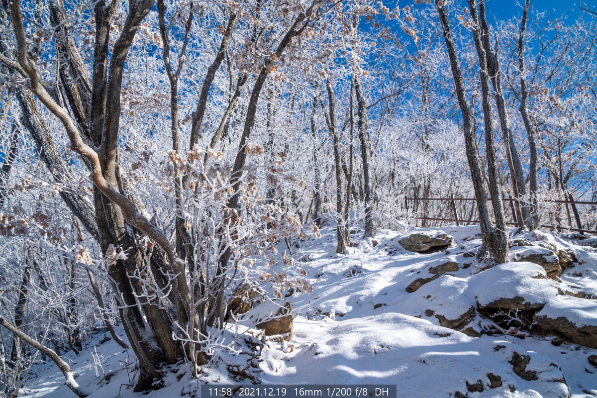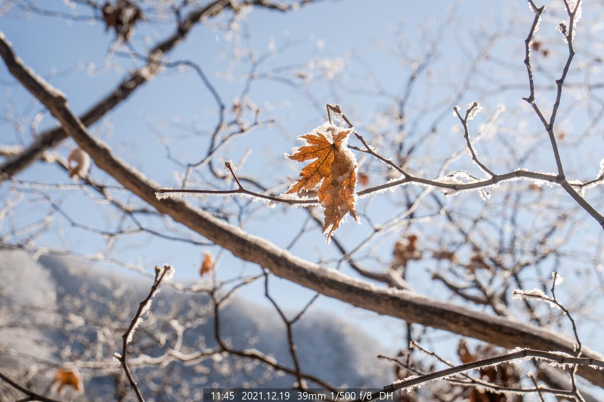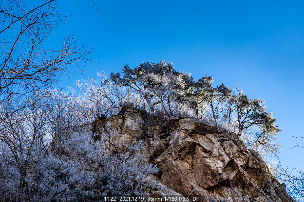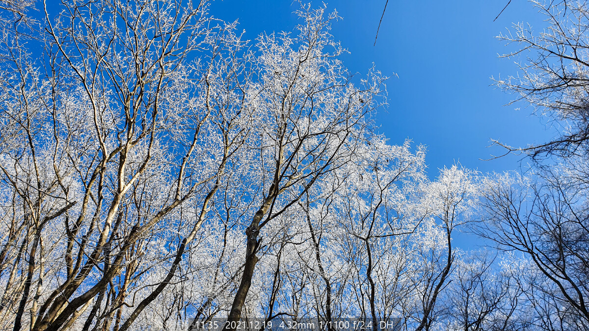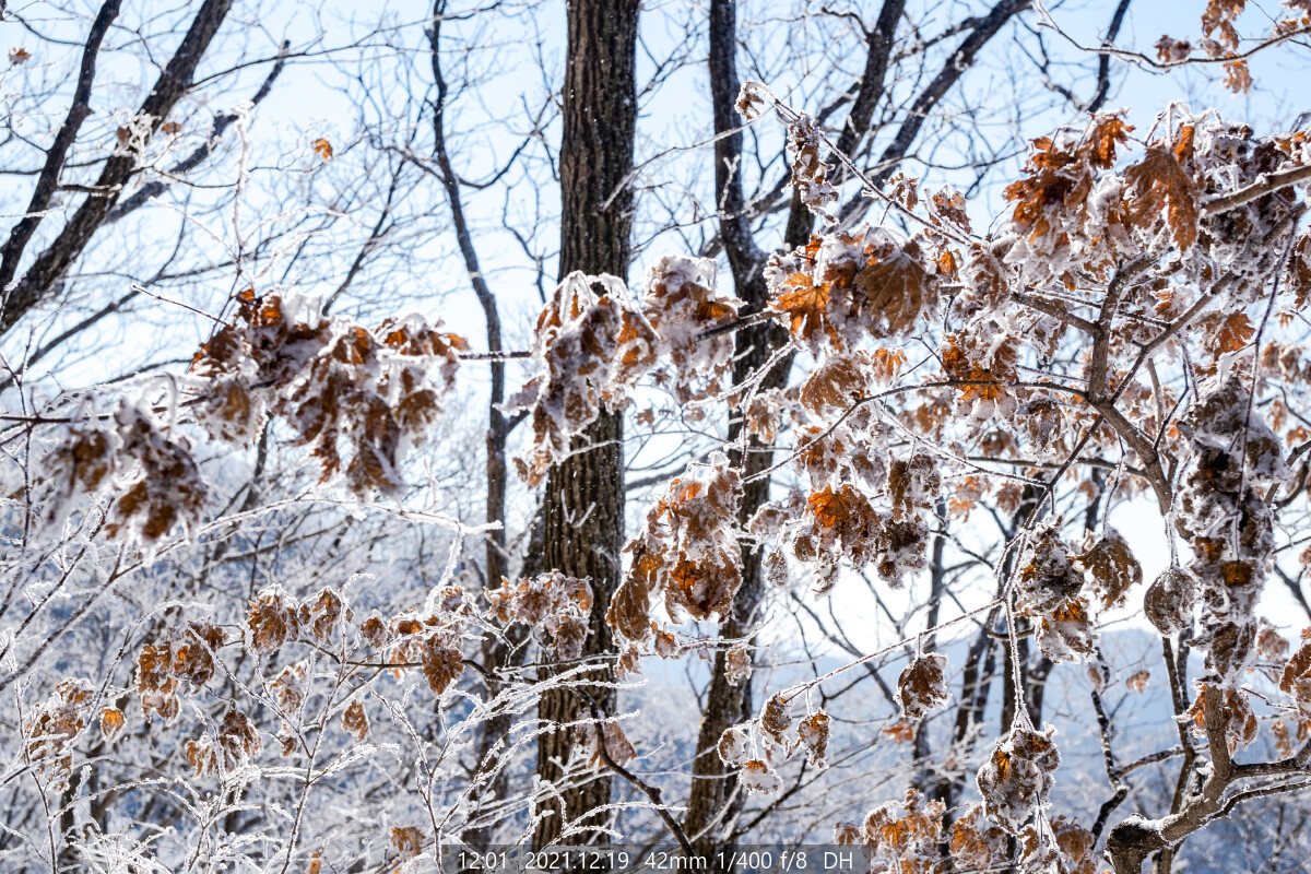 갑자기 돌풍이 불더니, 상고대가 쏟아진다.