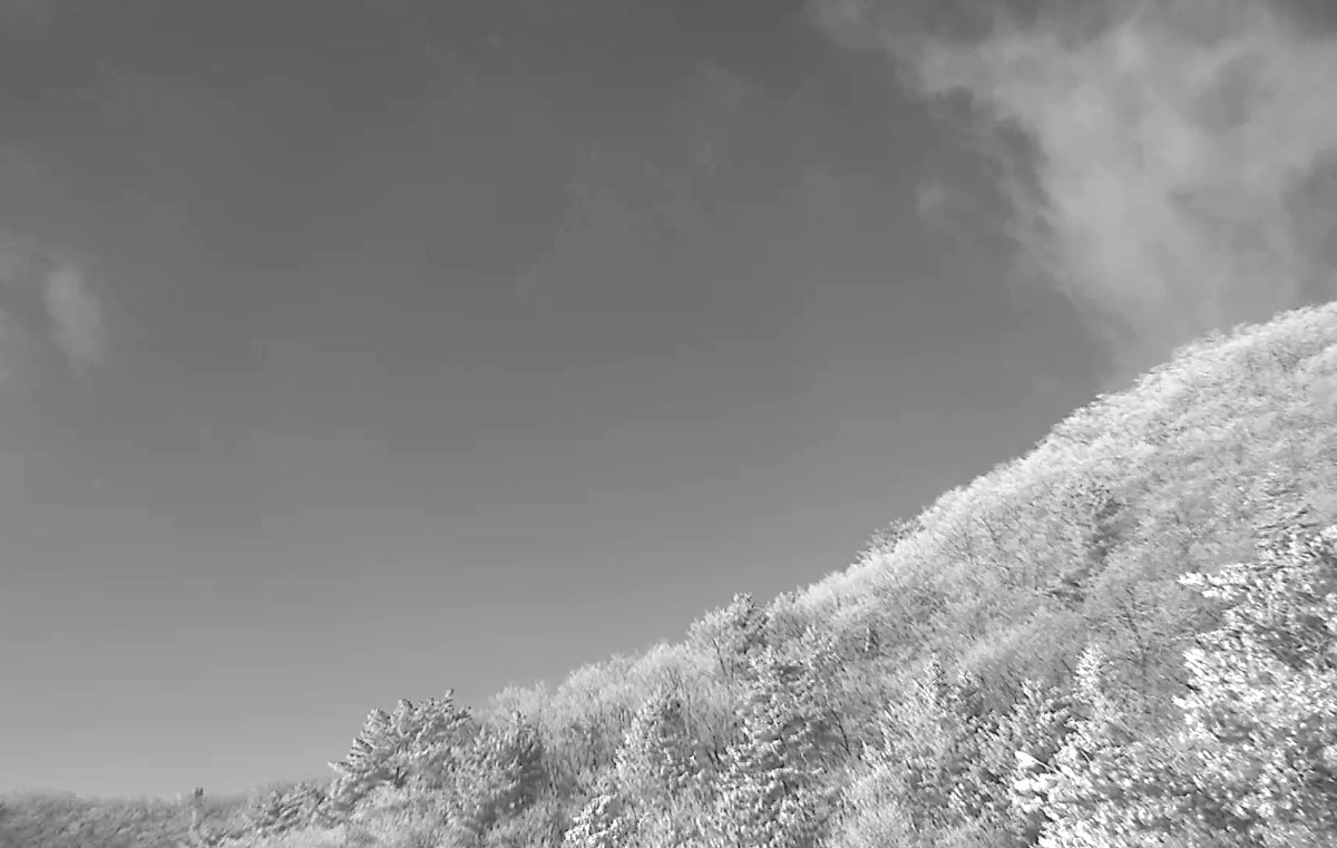 원주 가는 고속도로 곁의 산에는 눈의 흔적이 없어서 실망했는데, 황골로 접어드니 치악 능선을 하얗게 덮은 상고대가 보인다. 가슴 설레는 순간이다.