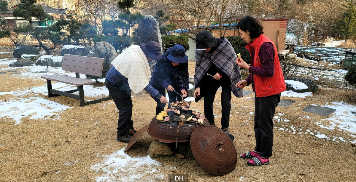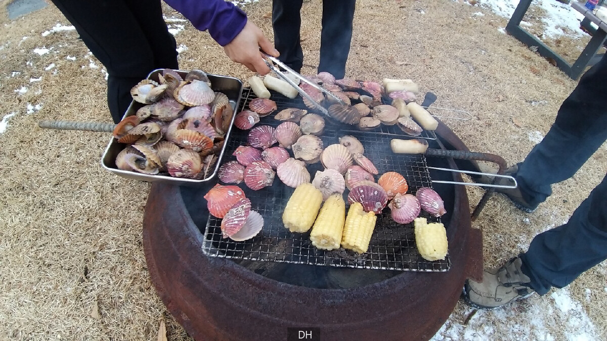 가마솥 화로에 가리비, 가래떡, 옥수수, 고구마를 구워 먹고, 재가 식어진 후, 20평 집에 들어가서 충훈이가 만들어줬다는 진공관 앰프에 이문세 LP를 턴테이블에 올리고, 담금주 한잔 마시며 도란도란거렸다.