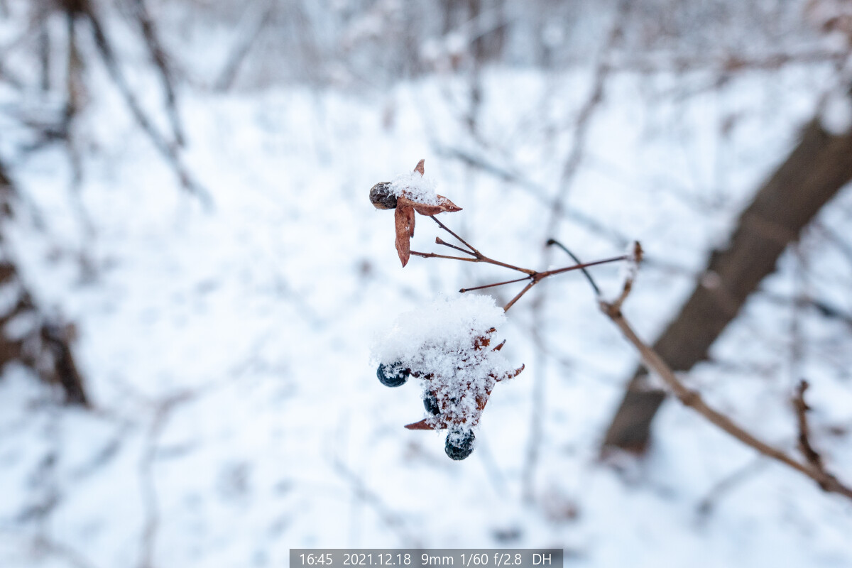 가막살나무의 빨간 열매는 흰 눈이 덮였을 때 젤로 예쁘다.