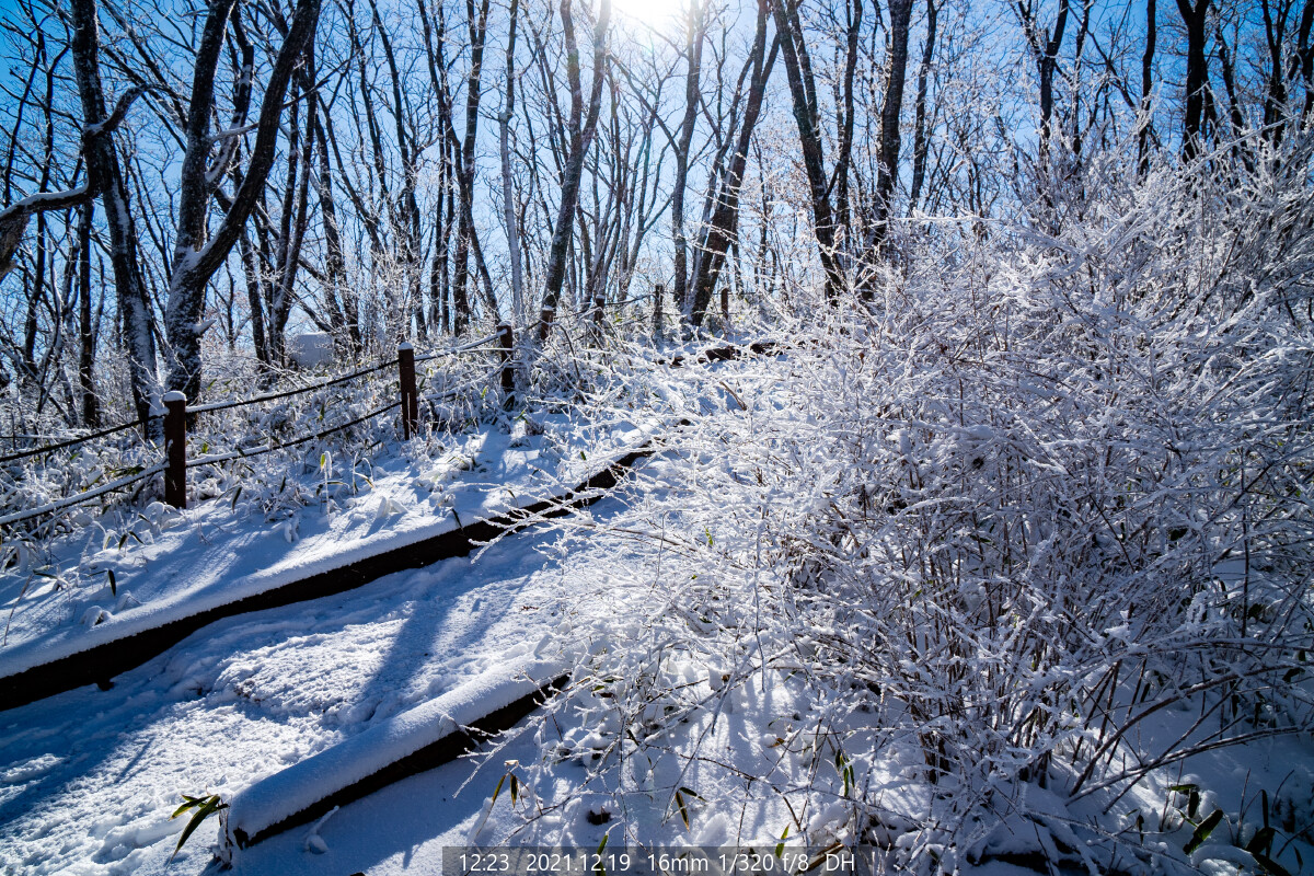 바람에 상고대가 많이 떨어져 나갔다. 늦은 출발이 아쉽다.