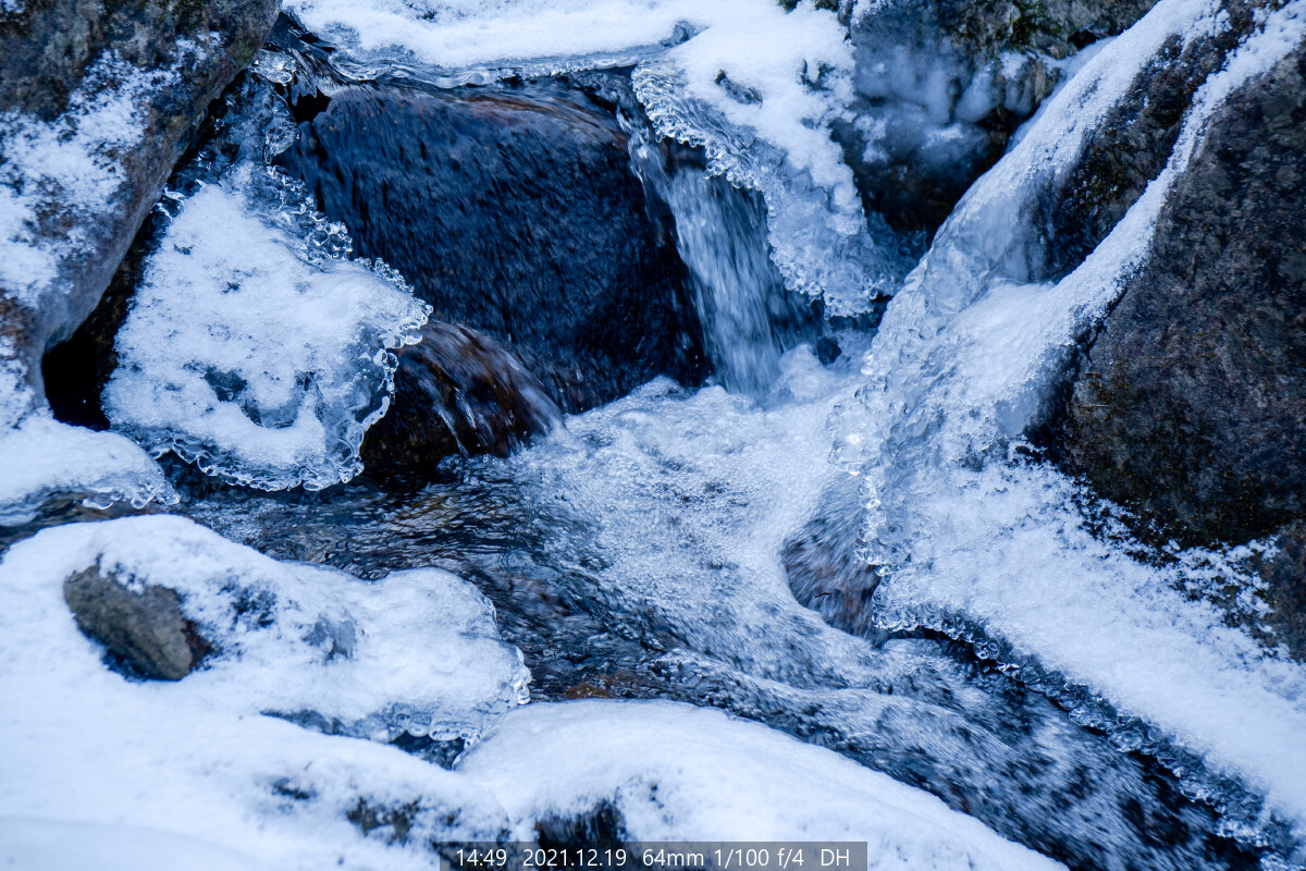 시간이 늦어서 비로봉은 오르지않고 계곡으로 내려갔다. 계곡에는 눈이 많이 쌓였을 거라는 계산도 했다. 비로봉 너머 사다리병창 길에는 눈이 적을 것 같았다. 나이가 들면서 잔머리만 는다...^^