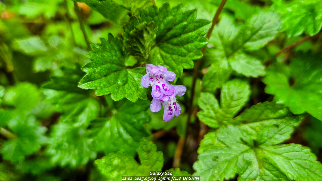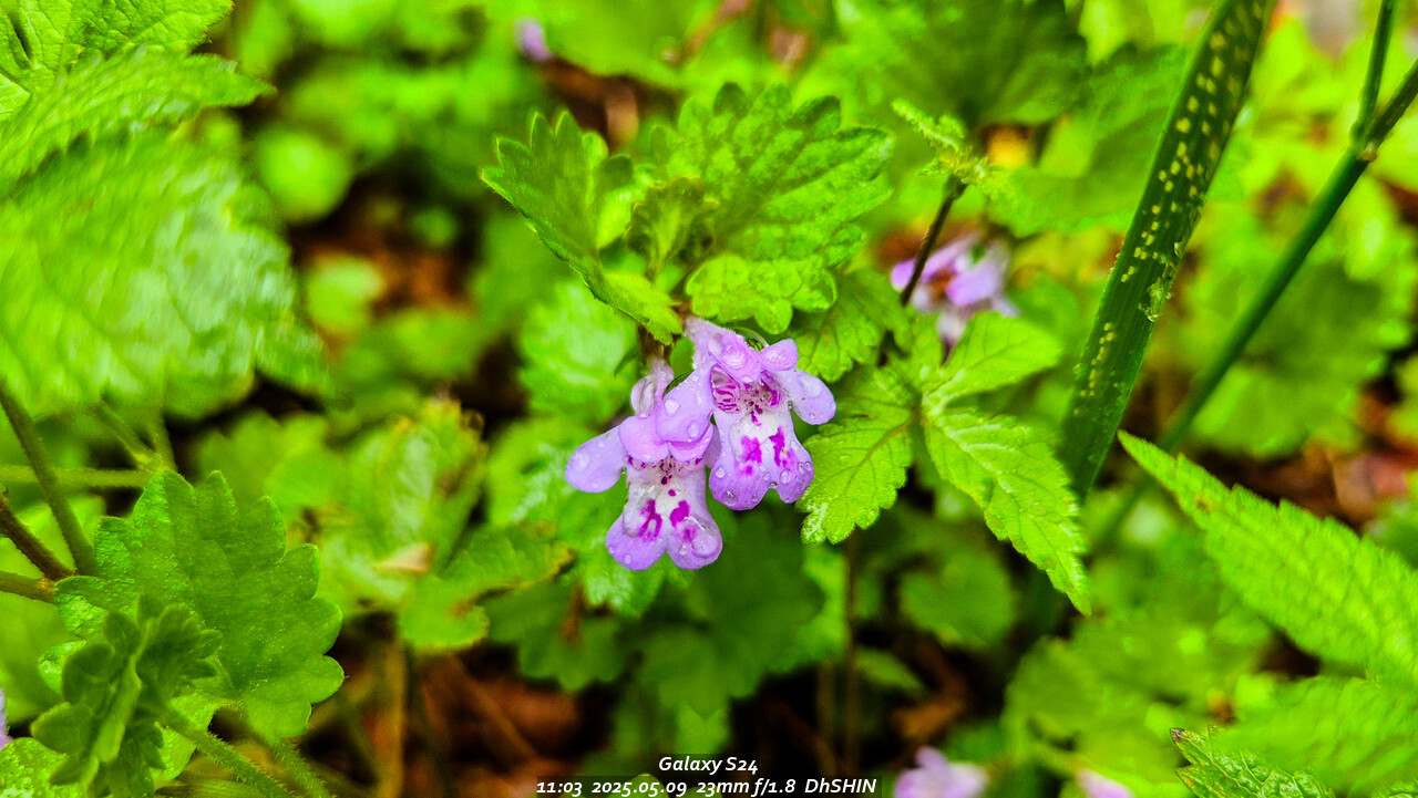 긴병꽃풀의 입술에 빗방울이 맺혔다