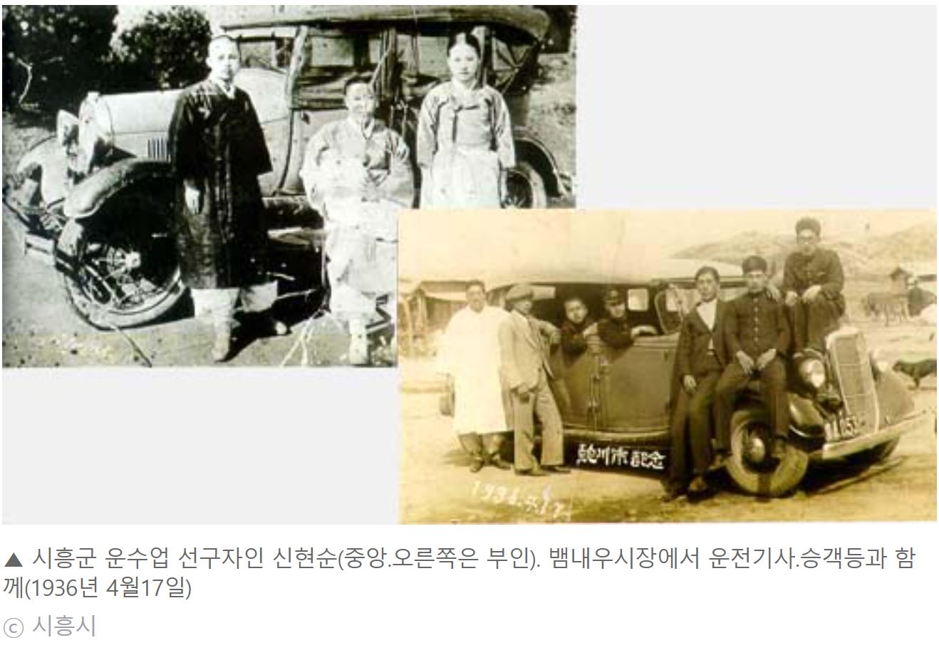 시흥의 첫 운수사업은 1928년에 금이동 출신 신현순(申鉉舜1895~1969)이 설립한 소신여객이다. 신현순은 이 해 신천동~소사(현 부천)간에 도로를 개설, 포드 8인승 한 대를 구입하여 운영하였으며, 이어 1932년에 안양~ 정왕동 옥구도간 도로가 개설되자 이듬해 운수사업을 실시 하루 8회씩 운행하기 시작했다. (시흥시, 『사진으로 보는 시흥 100년, 4 : 시흥의 생활문화』, 2001, 288쪽).