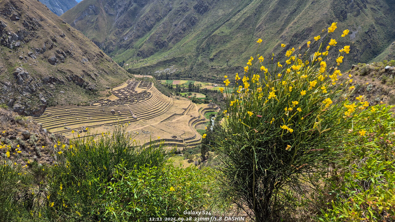 두 시간쯤 걸으니, 언덕 위에서 Llactapata가 눈앞에 펼쳐지면서, 잉카의 영화가 모습을 드러낸다. 숨을 멎게 하는 풍경이다.