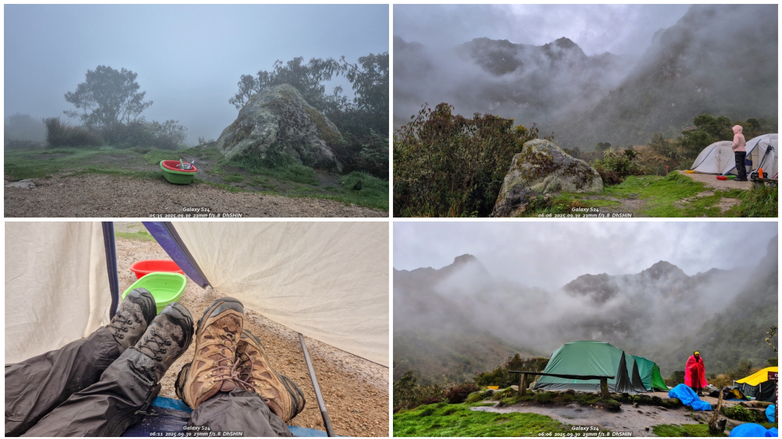 가장 힘든 코스를 마친 날이다. 백운대 오르는 정도의 강도였지만, 산소가 부족한 고산의 마지막 오르막이 힘들었다. 햇볕 아래 올랐다면 흐르는 땀을 주체하지 못했을 것이다. 보슬비가 대지를 식혀서 오르기 편했고, 구름이 멋진 풍경을 만들었다. 두 번째 고개도 만만치 않았다. 하지만 웅장한 자연과 유적, 계곡에서 솟아오르는 구름 사이로 쏟아지는 햇살. 이런 풍경에 취해서 힘이 들 틈이 없었다. 철저한 보상이 있는 곳이었다.