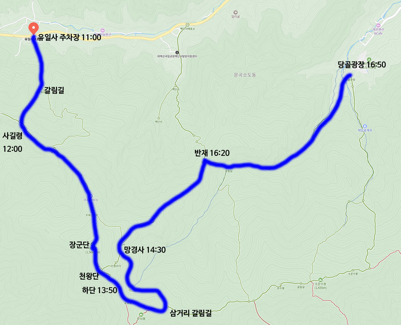유일사 주차장에서 꽃산행을 시작해서 당골 광장으로 내려온다.